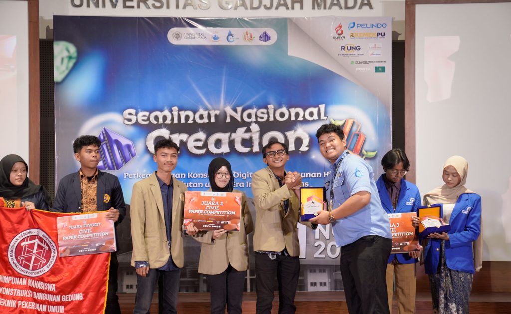 Mahasiswa Universitas Gadjah Mada (UGM) kembali membuat prestasi di ajang perlombaan Civil Paper Competition 9th Civil Creative and Action UGM 2025. Tim Avatar merupakan tim yang beranggotakan Muhammad Rafee Faiz A. A. (Teknik Sumber Daya Air 2024), Liant Indu Devina (Teknik Sumber Daya Air 2024), dan Rifki Rais Amanatullah (Teknik Sumber Daya Air 2024) didampingi oleh Ir. Endita Prima Ari Pratiwi, S.T., M.Eng., Ph. D. telah mendapatkan gelar Juara 2 pada kompetisi tersebut. Kompetisi tersebut diadakan oleh Departemen Teknik Sipil, Sekolah Vokasi, Universitas Gadjah Mada.