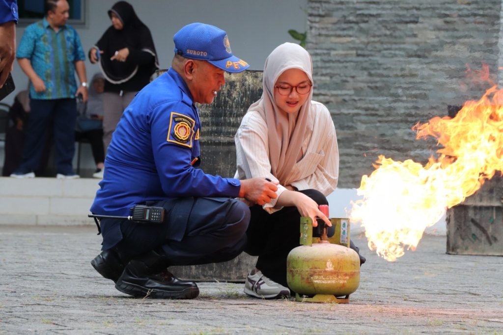 Kegiatan diawali dengan sesi paparan dari Tim PK4L UGM yang menjelaskan berbagai aspek keselamatan kebakaran, meliputi pengenalan alat pemadam api ringan (APAR), metode pemadaman kebakaran, sistem proteksi kebakaran, serta sarana penyelamatan diri di gedung. Tim PK4L juga memberikan penjelasan mengenai prosedur tanggap darurat, pentingnya jalur evakuasi, dan tata cara menghadapi kebakaran dengan aman dan cepat. Penjelasan diberikan secara interaktif sehingga peserta dapat memahami teori dasar dan fungsi peralatan yang digunakan dalam situasi darurat.
