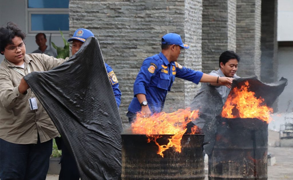 Di area titik kumpul, peserta mendapatkan penjelasan dan praktik langsung pemadaman kebakaran menggunakan hydrant dan APAR. Mahasiswa diberi kesempatan mencoba memadamkan api secara bergantian dengan karung basah, hydrant, dan APAR, didampingi oleh Tim PK4L UGM. Kegiatan ini juga diselingi sesi tanya jawab interaktif mengenai teknik pemadaman dan pemeliharaan APAR, kemudian diakhiri dengan sesi foto bersama seluruh peserta dan tim pelatih sebagai penutup kegiatan yang edukatif dan bermanfaat tersebut. (Sumber: humas DTSL)